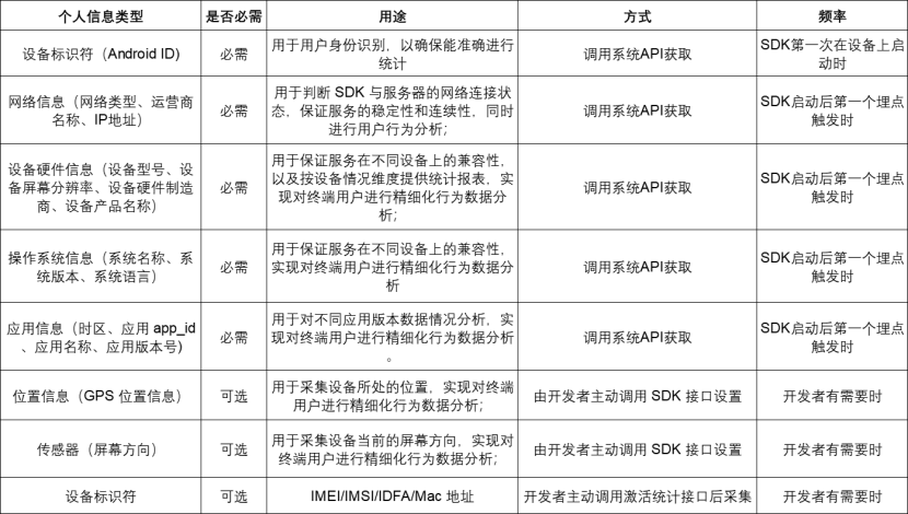 为实现以上功能,尊龙凯时|品友SDK会在用户知悉并授权同意的前提下,收集开发者应用调用 SDK 接口的信息,并调用相关权限。具体如下: